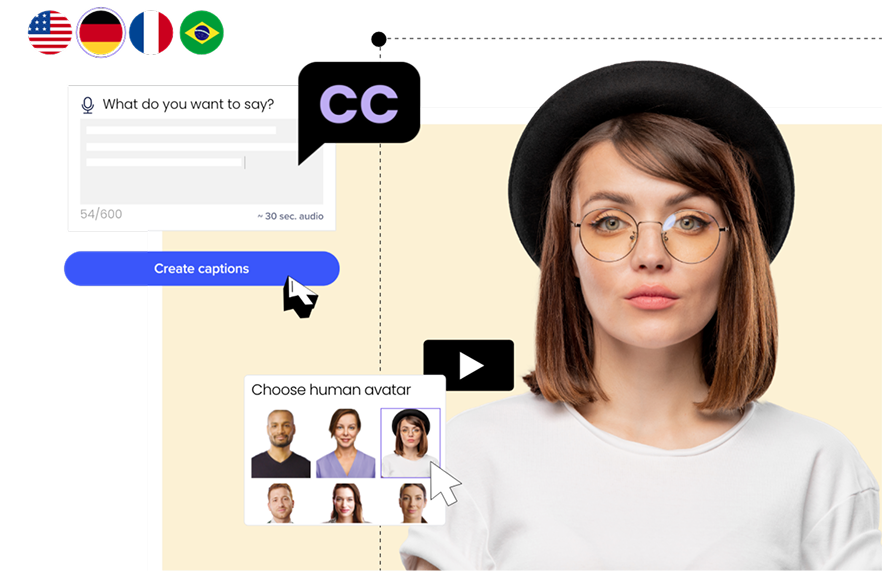 Break down language barriers and build genuine connections across your global audiences with over 140+ supported languages and accents.Closed captions can be embedded directly into your video so they're always visible, or keep them open so viewers can turn them on and off.