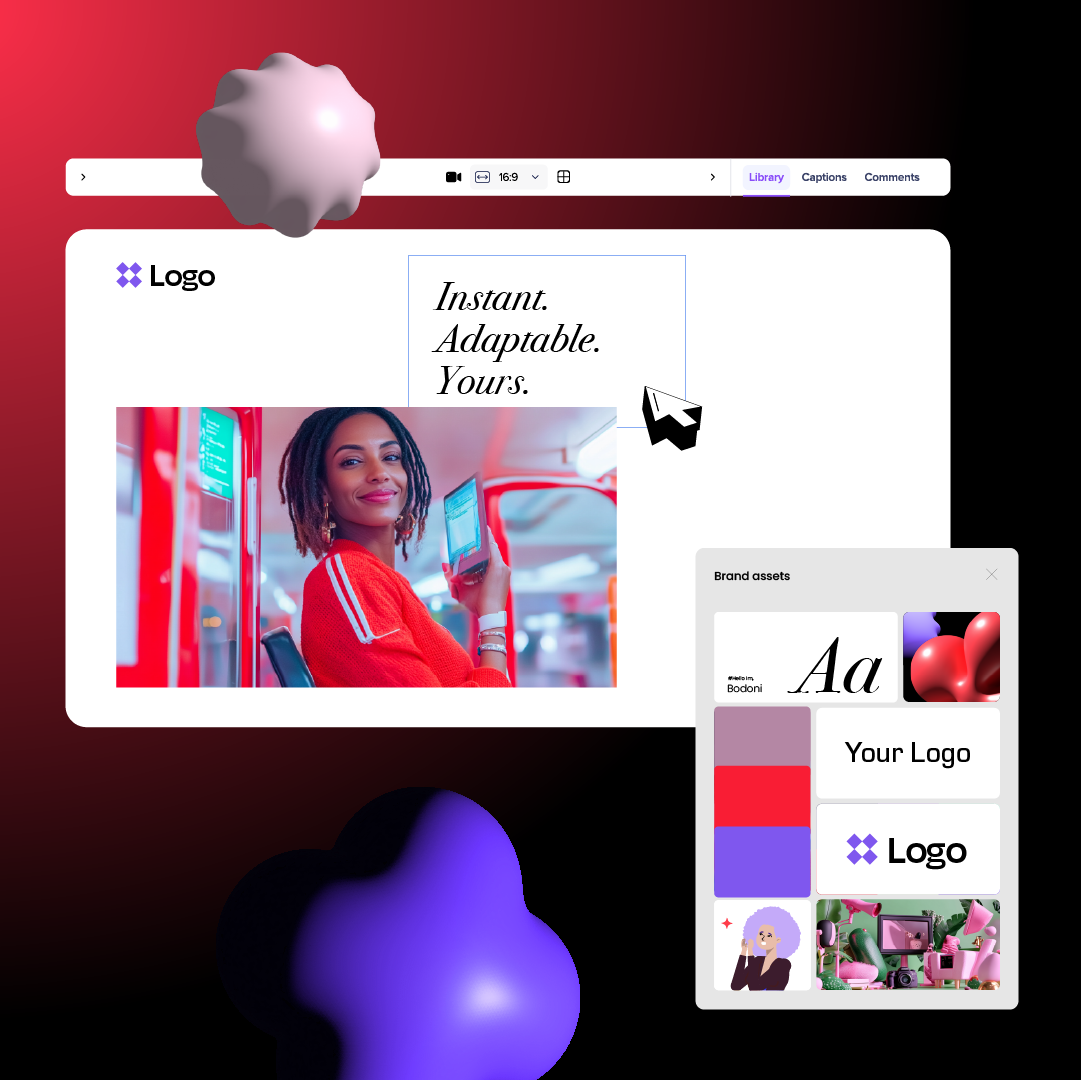 CONTENT THAT'S UNMISTAKABLY YOURSOur collaborative tools ensure every video is instantly created, infinitely adaptable, and uniquely yours through shared brand assets, corporate templates, and streamlined collaboration with built-in reviews and approvals, brand locking, and a centralized