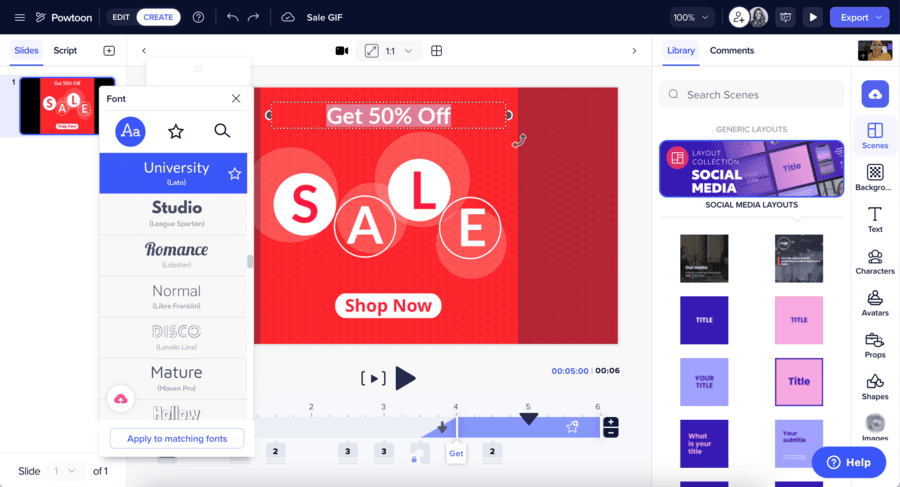 Enjoy hundreds of professionally-designed GIF templates, animated & branded characters, designed elements, and millions of royalty-free images, HD footage, and soundtracks. Create everything from memes and reactions to branded moments that your audience will share.
